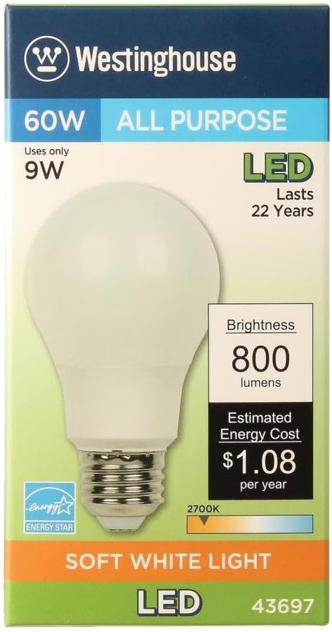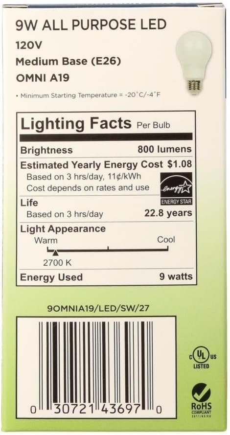 Energy Saving & Long-lasting: Save up to 85% on energy costs by replacing 60W with just 9W. An estimated energy cost of only $1.08 per year. Assuming you light up 3 hours a day, it will last up to 13.7 years. You no longer need to change bulbs frequently.